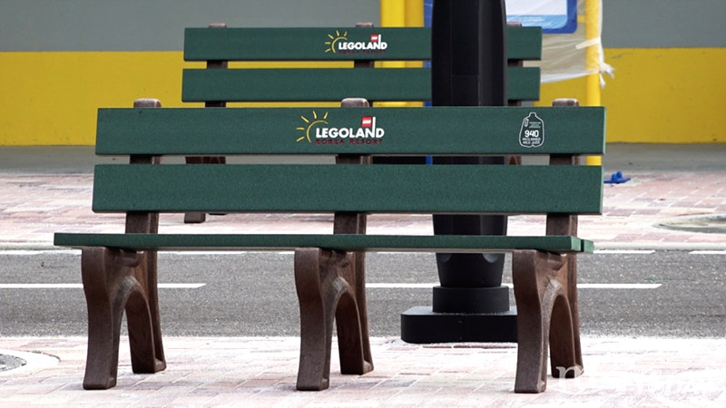 아직은 빈 공간과, 레고로 만든 듯한 벤치